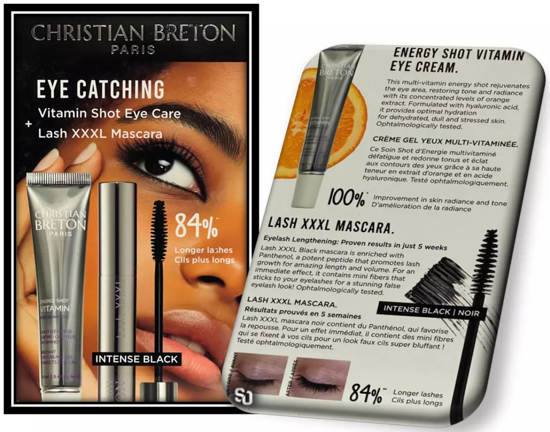 Transform your eye care routine with the Christian Breton Eye Catching set, featuring a revitalising eye cream and a luxurious mascara. This exceptional duo is crafted to rejuvenate your eyes and enhance your lashes, providing a vibrant and youthful appearance.